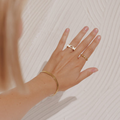Alle mine smykker er skabt i rustfrit stål og forædlet med en særlig PVD-belægning. Stål er et stærkere materiale end både sølv og guld, hvilket gør smykkerne ekstra slidstærke og holdbare. Den særlige belægning sørger samtidig for, at farven bliver ved med at være smuk – så du kan bruge dem hver dag uden at bekymre dig.