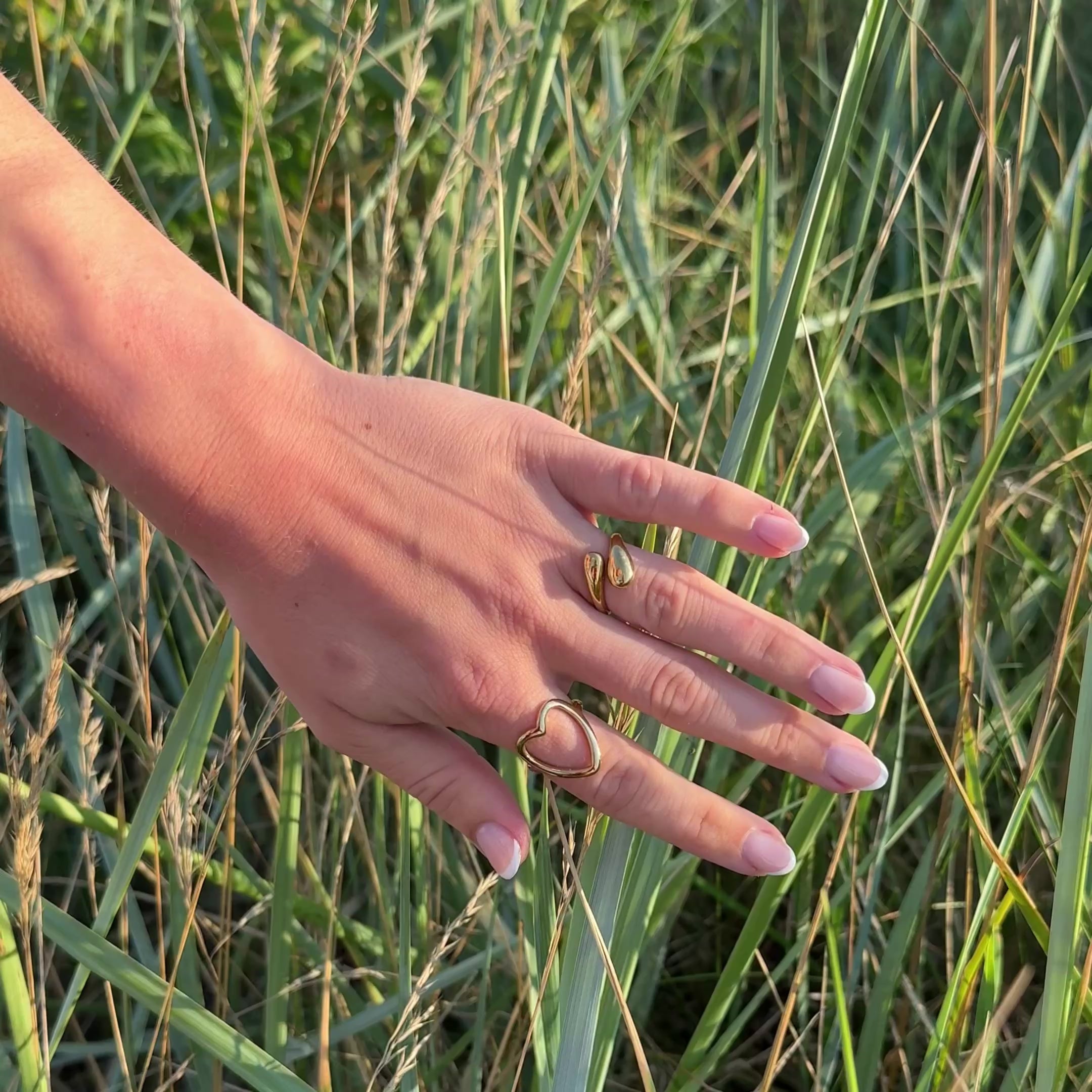 En let og elegant ring i 18K guldbelagt stål med et åbent hjerte – smuk på ring-, lange- eller pegefingeren for et moderne og feminint udtryk.